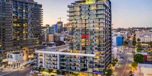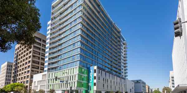 Located at the prominent corner of Wilshire Boulevard and Virgil Avenue in Los Angeles’ Koreatown, 3033 Wilshire is a striking 18-story, 365,710-square-foot luxury mixed-use residential tower. This high-rise development includes 190 upscale apartment units, a 5,500-square-foot ground-level retail space, and five levels of above-grade parking totaling 117,555 square feet with 291 stalls.