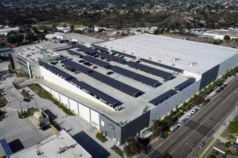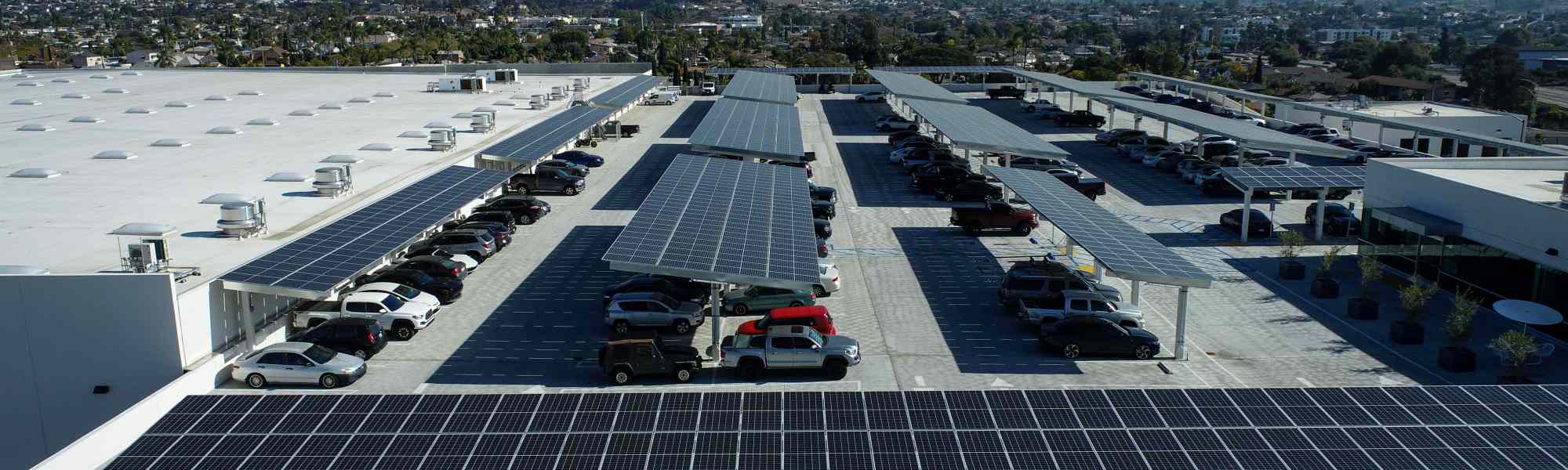 This is a new build carport structure with a 944.28 kW system located at the Crest Beverages property in San Diego, CA