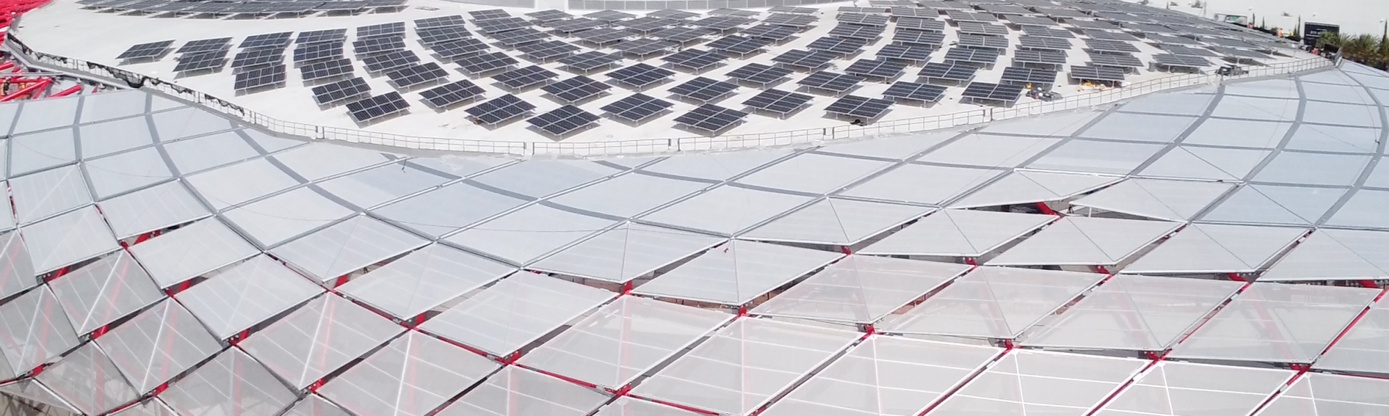 This is a large project consisting of a 2,859.32 kW system in multiple locations on the Intuit Stadium Property. There are a total of 5,492 panels that are spread out across the dome of the stadium, the west parking garage, and the south parking garage